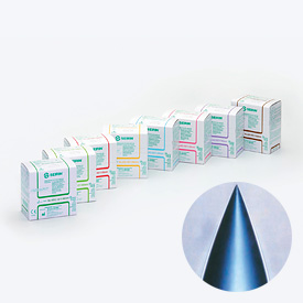 鍼先はセイリン独自の研削技術が可能にした改良松葉型です。先端部分は丸みを帯び表面がなめらかな鍼先となっております。※鍼先はセイリンディスポ鍼Lタイプと同様です。